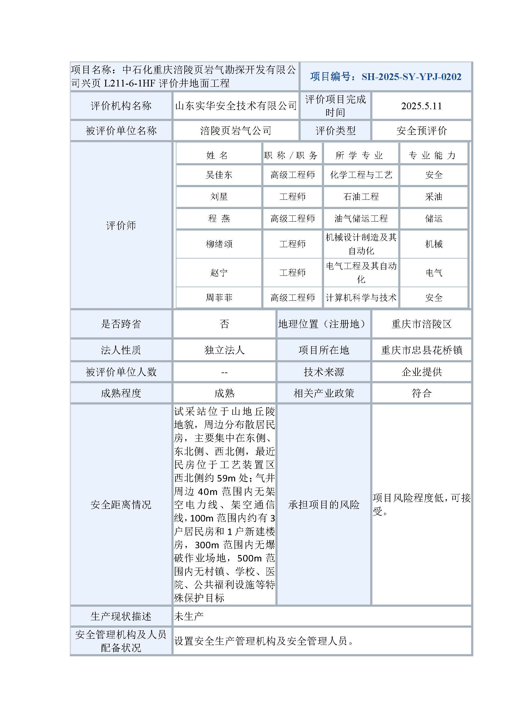 中石化重慶涪陵頁(yè)巖氣勘探開(kāi)發(fā)有限公司興頁(yè)L211-6-1HF評(píng)價(jià)井地面工程安全預(yù)評(píng)價(jià)